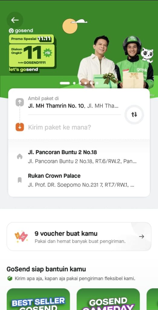 Bukan aplikasi Gojek dan klik fitur GoSend untuk menggunakan layanan kirim barang.