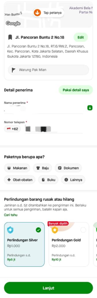 Masukkan detail kontak penerima agar kurir bisa berkabar dengan penerima barang Anda.
