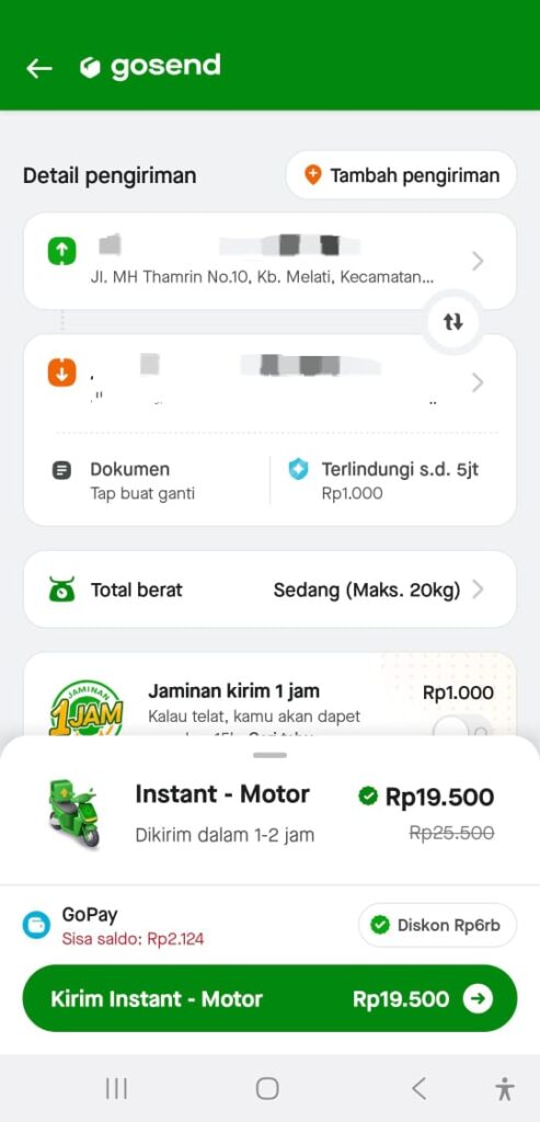 - Instant – Motor dapat dipilih untuk barang dengan bobot maksimal 20 kg.