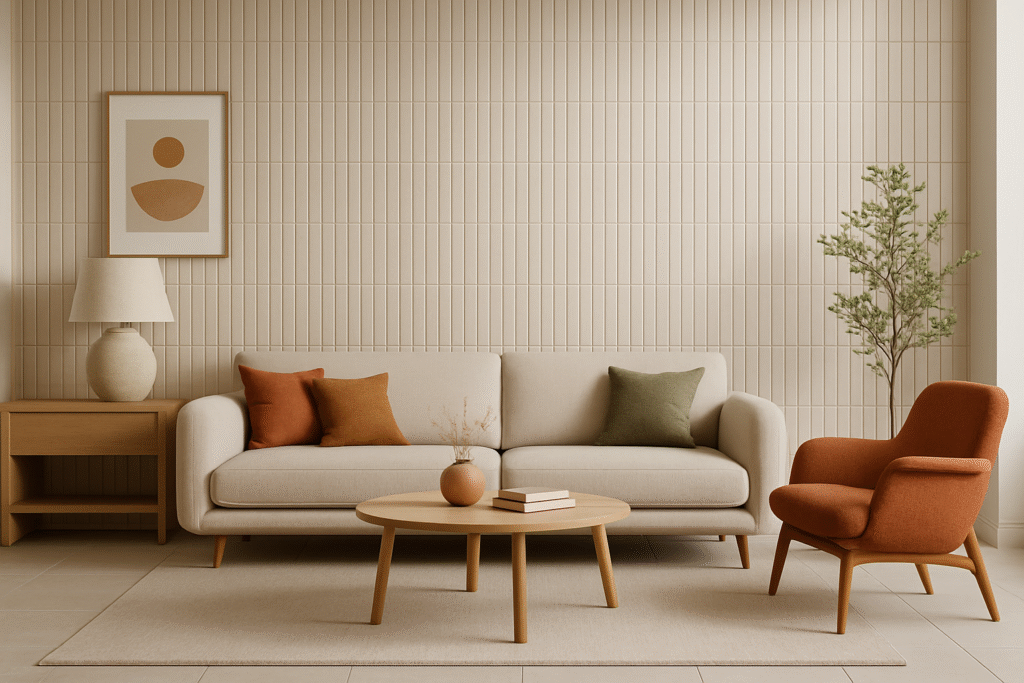 Wall tiles can be an aesthetic yet functional choice to enhance your living room and give your home a more modern appeal. This material not only beautifies the space but is also durable, easy to clean, and suitable for a variety of interior styles—from minimalist to natural.